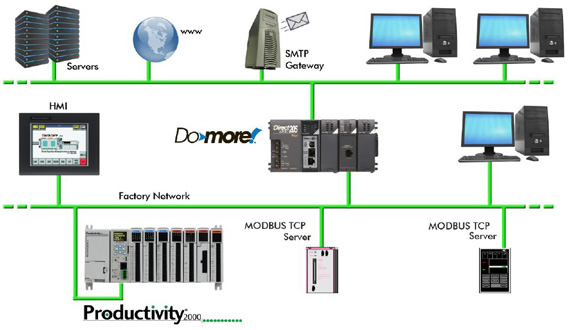 اتصال چند دستگاه مانند PLC ها، HMI ها، ورودی/خروجی های میدانی و گروه های سوپاپ با استفاده از اترنت آسان است. علاوه بر این، به خاطر سرعت بالای اترنت در مقایسه با شبکه های سریال قدیمی تر، ارتباط بین چند دستگاه متفاوت روی یک کابل سریع باقی می ماند.